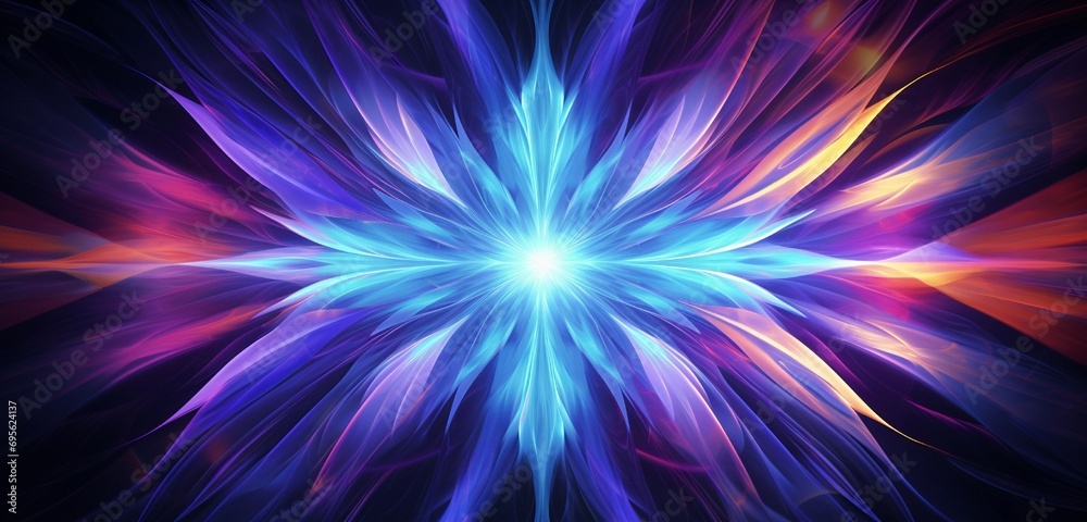 Wall mural : A vibrant digital abstract background with kaleidoscopic patterns and vibrant colors reminiscent of
