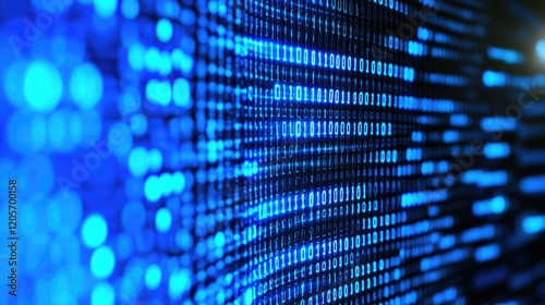 Wall mural a vibrant digital landscape featuring flowing streams of binary code (ones and zeros) against a blur