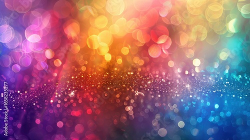 Wall mural a vibrant display of bokeh lights with a spectrum of colors and sparkling glitter effects across the