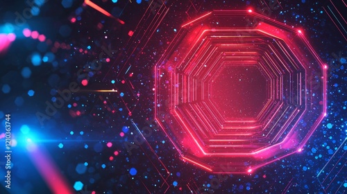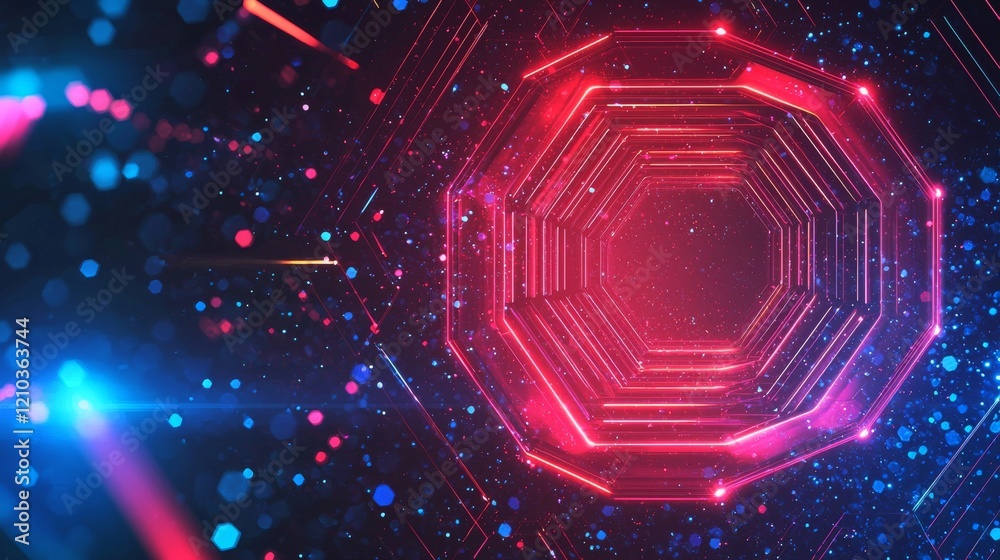 Wall mural a vibrant futuristic scene featuring concentric neon hexagonal outlines glowing in alternating red a - Wall murals Wall mural a vibrant futuristic scene featuring concentric neon hexagonal outlines glowing in alternating red a - Wall murals