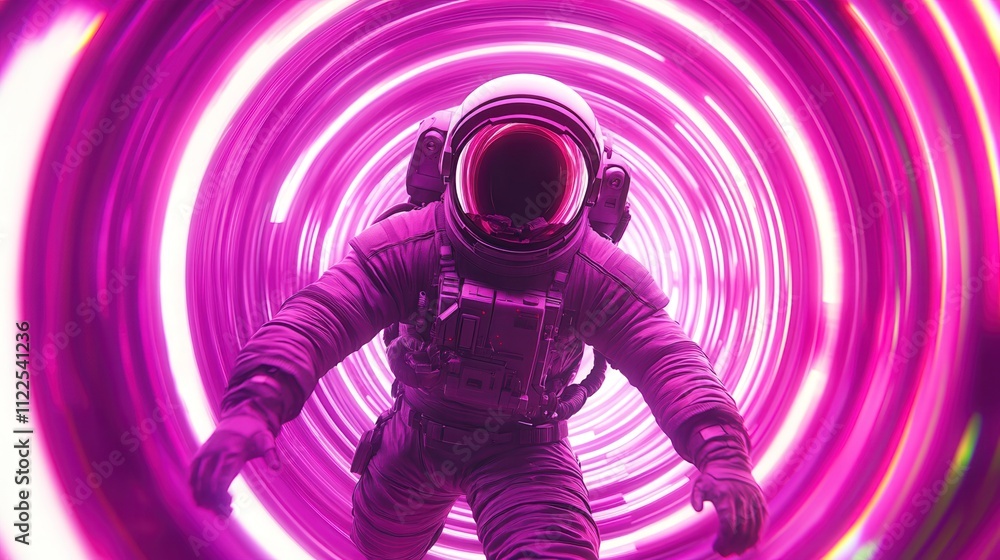 Wall mural a vibrant image of an astronaut navigating through a swirling tunnel of pink light, evoking a sense  - Wall murals Wall mural a vibrant image of an astronaut navigating through a swirling tunnel of pink light, evoking a sense - Wall murals