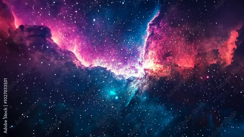 Wall mural a vibrant nebula glows with pink and blue hues against a backdrop of countless stars - Wall murals Wall mural a vibrant nebula glows with pink and blue hues against a backdrop of countless stars - Wall murals