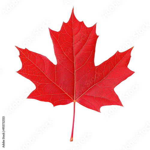 The watermark will not be included on Wall mural.: A vibrant red maple leaf with intricate veins, isolated on a black background - perfect for fall, nat