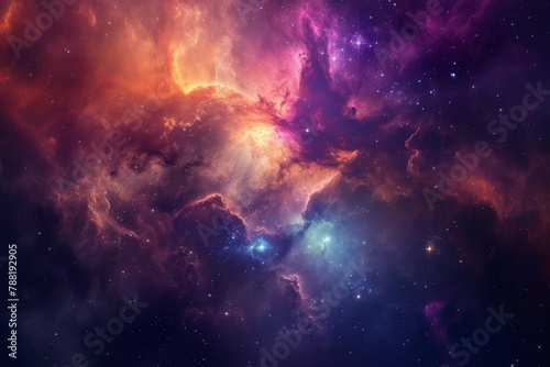 Wall mural a vibrant space scene featuring an array of colorful stars and billowing clouds floating in the sky,