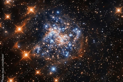 Wall mural a vibrant star cluster with blue and orange hues, surrounded by a dark, starry expanse. - Wall murals Wall mural a vibrant star cluster with blue and orange hues, surrounded by a dark, starry expanse. - Wall murals