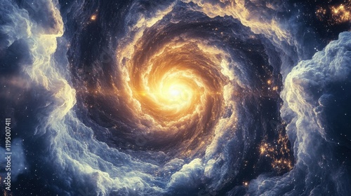 The watermark will not be included on Wall mural.: A view from space to a spiral galaxy and stars - universe filled with stars -