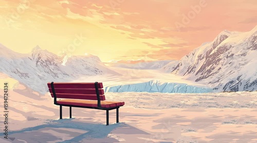 Wall mural a view of a bench with a view of a glacier in the afternoon. 4k animated video - Wall murals Wall mural a view of a bench with a view of a glacier in the afternoon. 4k animated video - Wall murals
