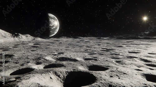 The watermark will not be included on Wall mural.: A view of a planet from the surface of the moon -