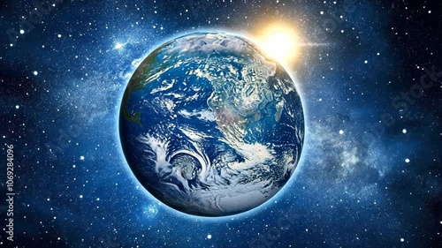 Wall mural a view of earth from space with the sun shining brightly in the background