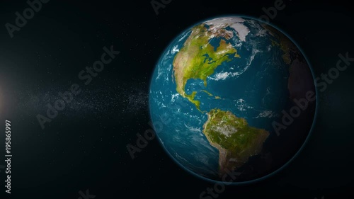 The watermark will not be included on Wall mural.: A view of mother earth rotating in deep space - looping - off set right with sunlight on left of scree