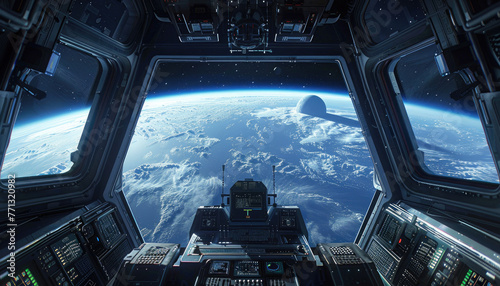 Wall mural a view of the earth from a space shuttle by ai generated image - Wall murals Wall mural a view of the earth from a space shuttle by ai generated image - Wall murals