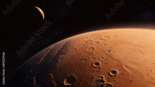 The watermark will not be included on Wall mural.: A view of the surface of the planet with a star in the background -