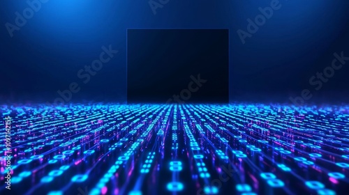 Wall mural a virtual reality background with an abstract cyber space setting, composed of a digital matrix grid