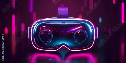 Wall mural a virtual reality headset with a purple strap is on a table.