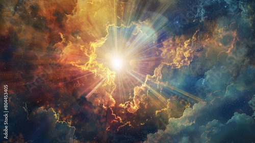 Wall mural a visionary depiction of revelation 21-22, showing a radiant new heaven and a new earth emerging fro - Wall murals Wall mural a visionary depiction of revelation 21-22, showing a radiant new heaven and a new earth emerging fro - Wall murals