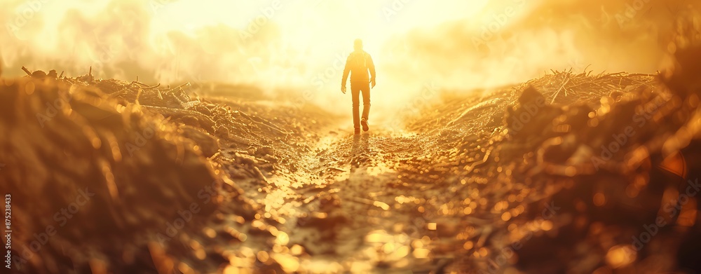 Wall mural : A visual representation of a person pushing through a difficult path with a strong resolve, signifyi