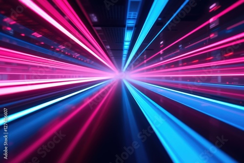 The watermark will not be included on Wall mural.: A vivid showcase of neon light beams creating a dynamic and futuristic atmosphere in a high-tech env