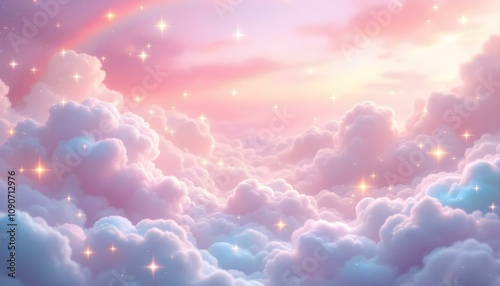 Wall mural a whimsica pastel rainbow unicorn background shines with sparkling stars against a soft, pink fantas