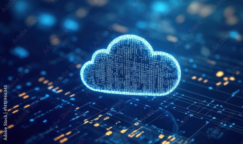 The watermark will not be included on Wall mural.: A white cloud icon on a blue background with binary code, symbolizing the technology behind cloud co