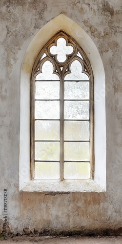 Wall mural a window with a stone arch and a stained glass window. the window is open and the light is shining t - Wall murals Wall mural a window with a stone arch and a stained glass window. the window is open and the light is shining t - Wall murals