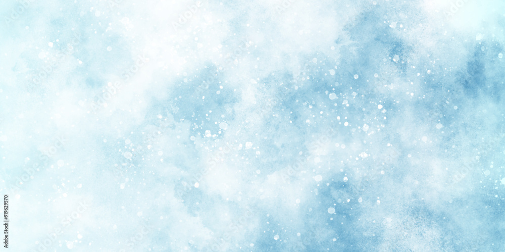 The watermark will not be included on Wall mural.: A winter background with snowflakes and randomized floating bokeh, blue snow background with clouds,