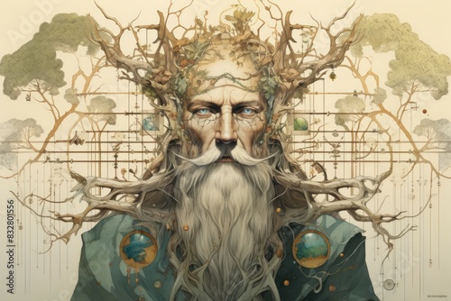 Wall mural a wise and ancient druid, attuned to nature and capable of transforming into beasts. - generative ai - Wall murals Wall mural a wise and ancient druid, attuned to nature and capable of transforming into beasts. - generative ai - Wall murals