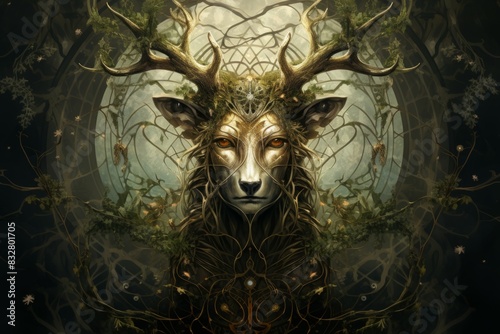 Wall mural a wise and ancient druid, attuned to nature and capable of transforming into beasts. - generative ai - Wall murals Wall mural a wise and ancient druid, attuned to nature and capable of transforming into beasts. - generative ai - Wall murals