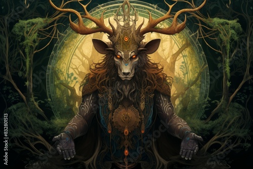 Wall mural a wise and ancient druid, attuned to nature and capable of transforming into beasts. - generative ai