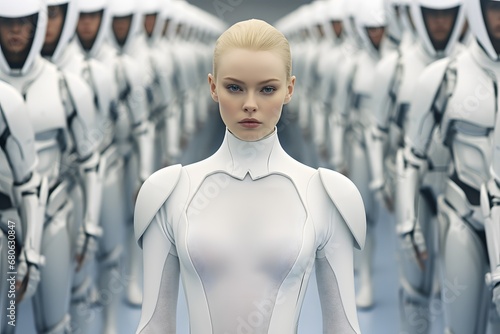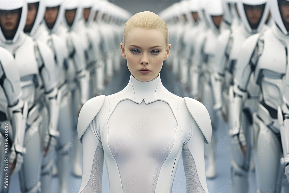 Wall mural a woman standing in front of a group of robots generative ai - Wall murals Wall mural a woman standing in front of a group of robots generative ai - Wall murals