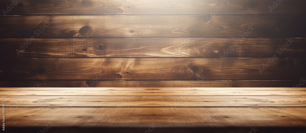 Wall mural a wooden background showcases a perspective view of an empty light plate with ample copy space for y