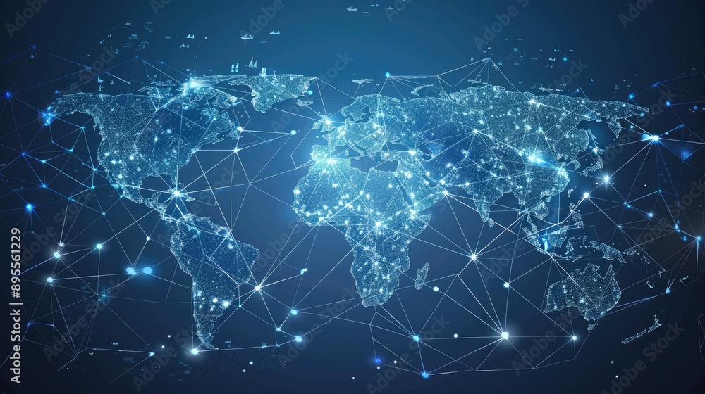 The watermark will not be included on Wall mural.: A world map with connecting lines representing global commerce -