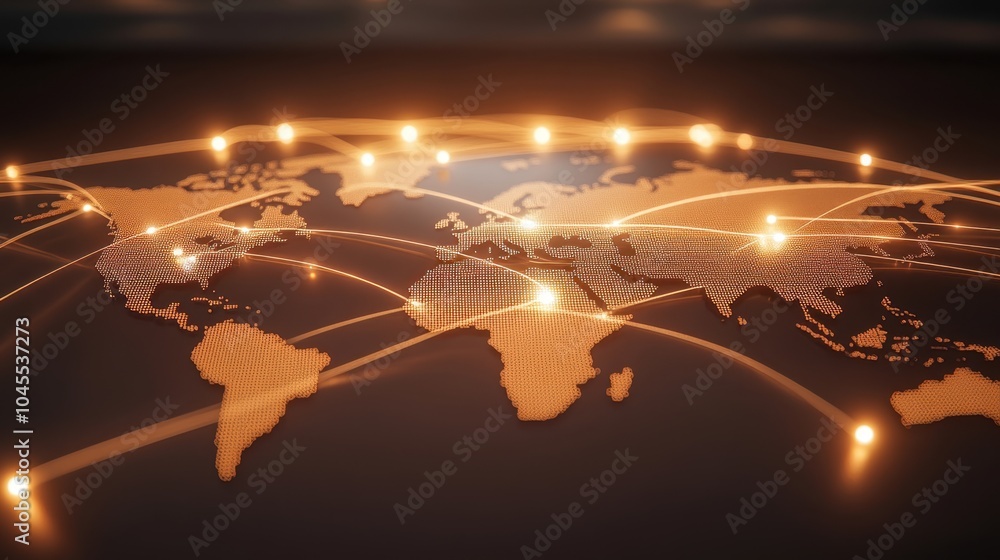 Wall mural a world map with illuminated lines connecting major trading hubs across the globe, symbolizing inter