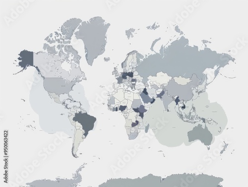 Wall mural a world map with many countries and regions. the map is grey and white - Wall murals Wall mural a world map with many countries and regions. the map is grey and white - Wall murals