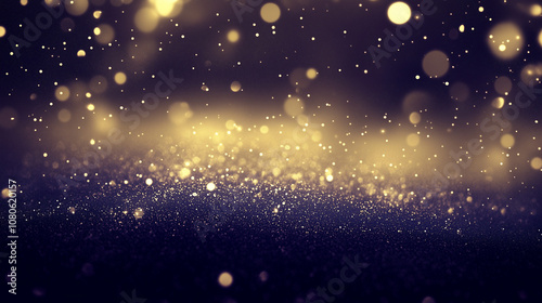 Wall mural : Abstract, dark and mysterious background with shimmering golden bokeh lights and floating particles -