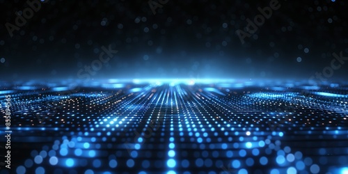 Wall mural abstract, futuristic background with blue glowing light rays and a grid pattern, perfect for tech an