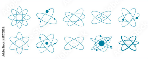 Wall mural abstract 2d wireframe shapes with atom and orbit designs. neon blue y2k geometry and mesh grids. fut