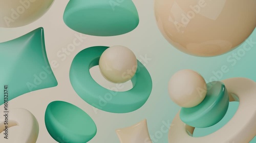 Abstract 3d abstract teal and beige 3d shapes - seamless looping 3d abstract motion background for crWall mural