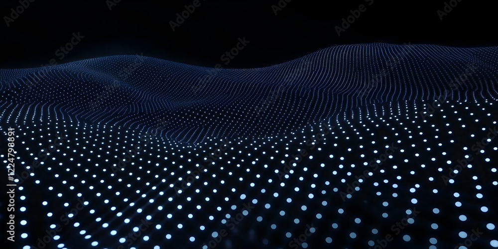 The watermark will not be included on Wall mural.: Abstract 3d background forms glowing dots waving smoothly in the dark space