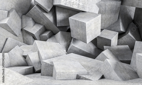 Wall mural abstract 3d background of a series of randomly placed concrete cubes. geometric and polygonal shapes