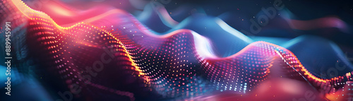 Wall mural : Abstract 3d background with wavy lines and glowing particles