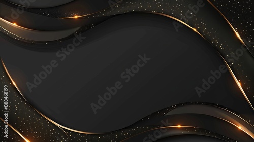 Wall mural abstract 3d black background with gold lines in curved wavy sparkle design featuring copy space for
