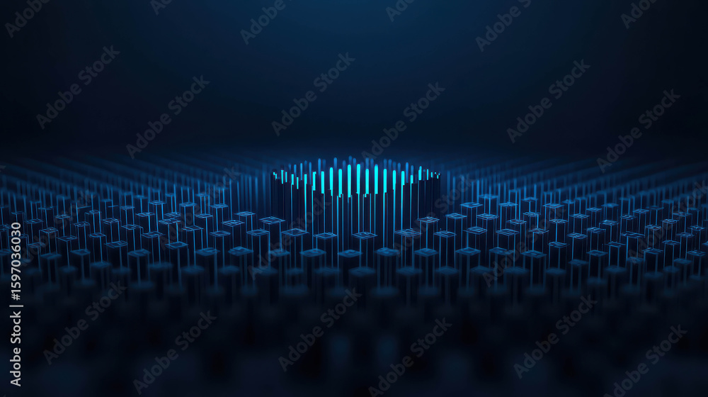 Wall mural abstract 3d blue and black background with vertical lines emerging from surface creating a modern fu - Wall murals Wall mural abstract 3d blue and black background with vertical lines emerging from surface creating a modern fu - Wall murals