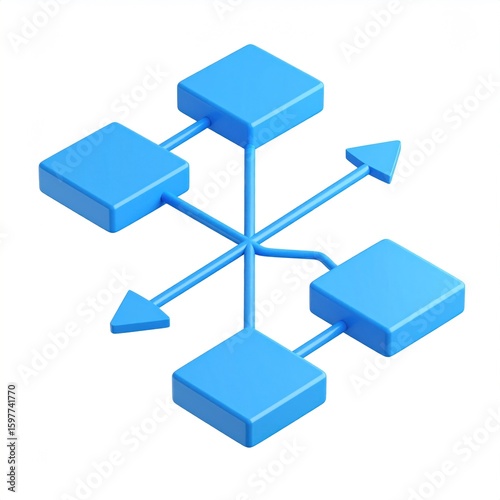 Wall mural : Abstract 3d flowchart icon with blue nodes arrows on white background representing data processes