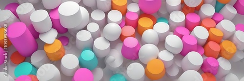 Wall mural Abstract 3D geometric shapes circle and sphere dynamic wide background pattern