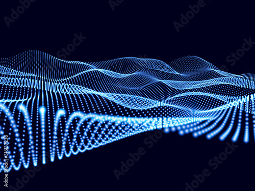 The watermark will not be included on Wall mural.: Abstract 3d grid from blue dots on black - technology abstract vector - future wave background -