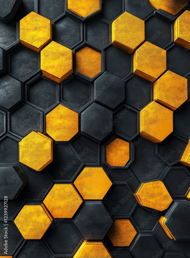 The watermark will not be included on Wall mural.: Abstract 3d hexagon pattern in yellow and black -