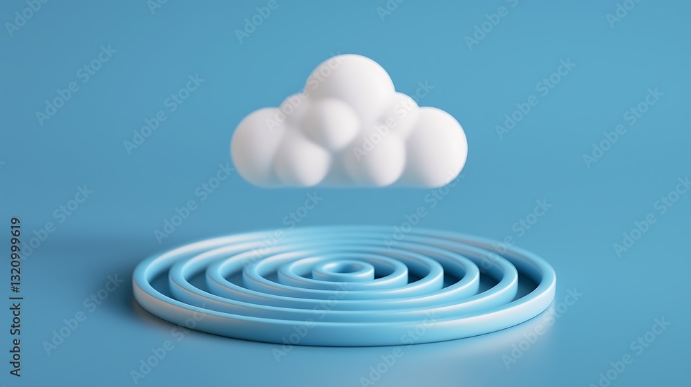 Abstract 3d illustration of cloud above circular ripple pattern on soft blue background for modern dWall mural