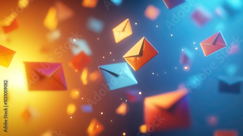 Wall mural abstract 3d illustration of colorful envelopes floating in the air, representing communication and d