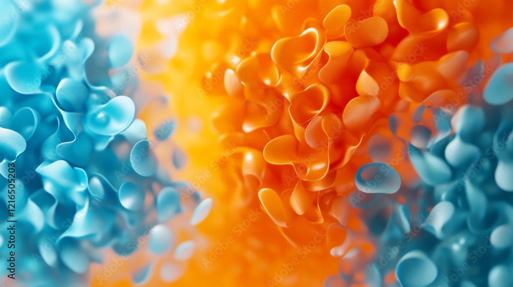 Abstract 3d illustration of orange and blue particles and fluid interactions, creating a dynamic floWall mural