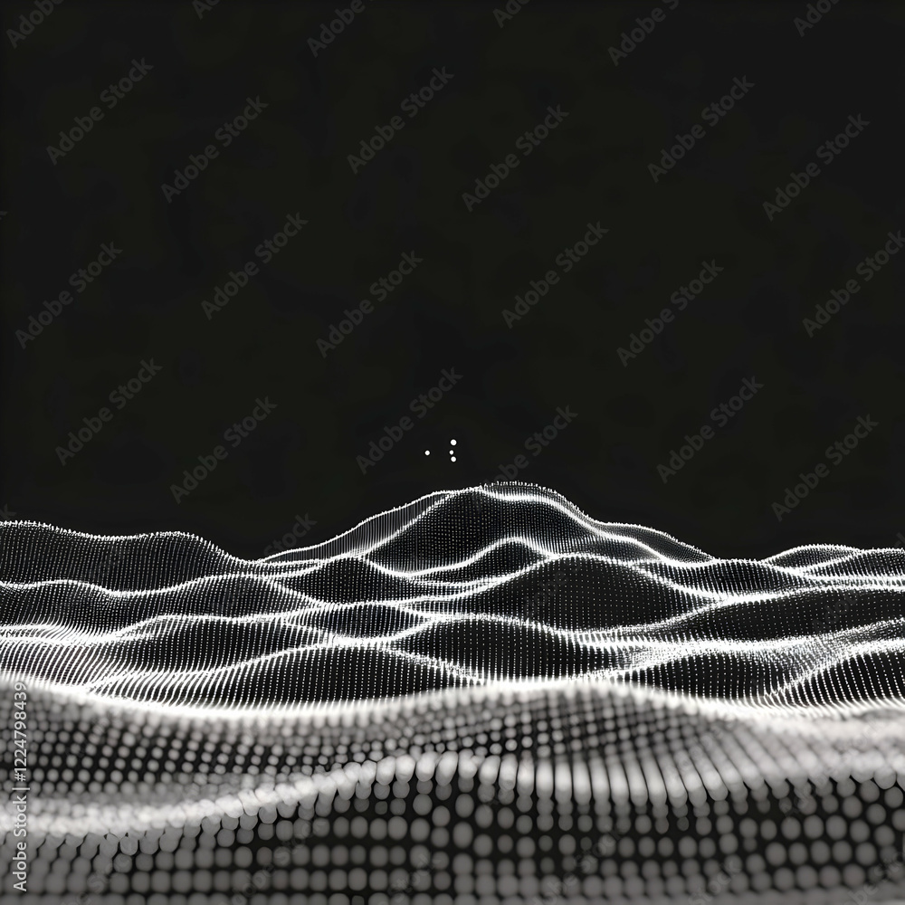 The watermark will not be included on Wall mural.: Abstract 3d landscape forms gentle curves with particles elegantly in a dark environment -